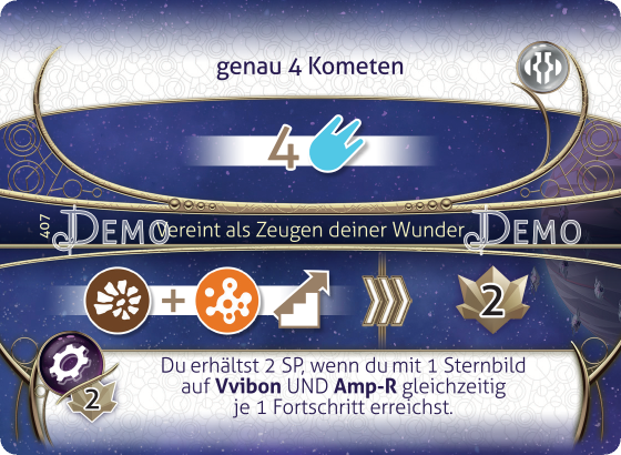 Dauerhafte Fähigkeit: Du erhältst 2 SP, wenn du mit 1 Sternbild auf Vivbon UND Amp-R gleichzeitig je 1 Fortschritt erreichst.